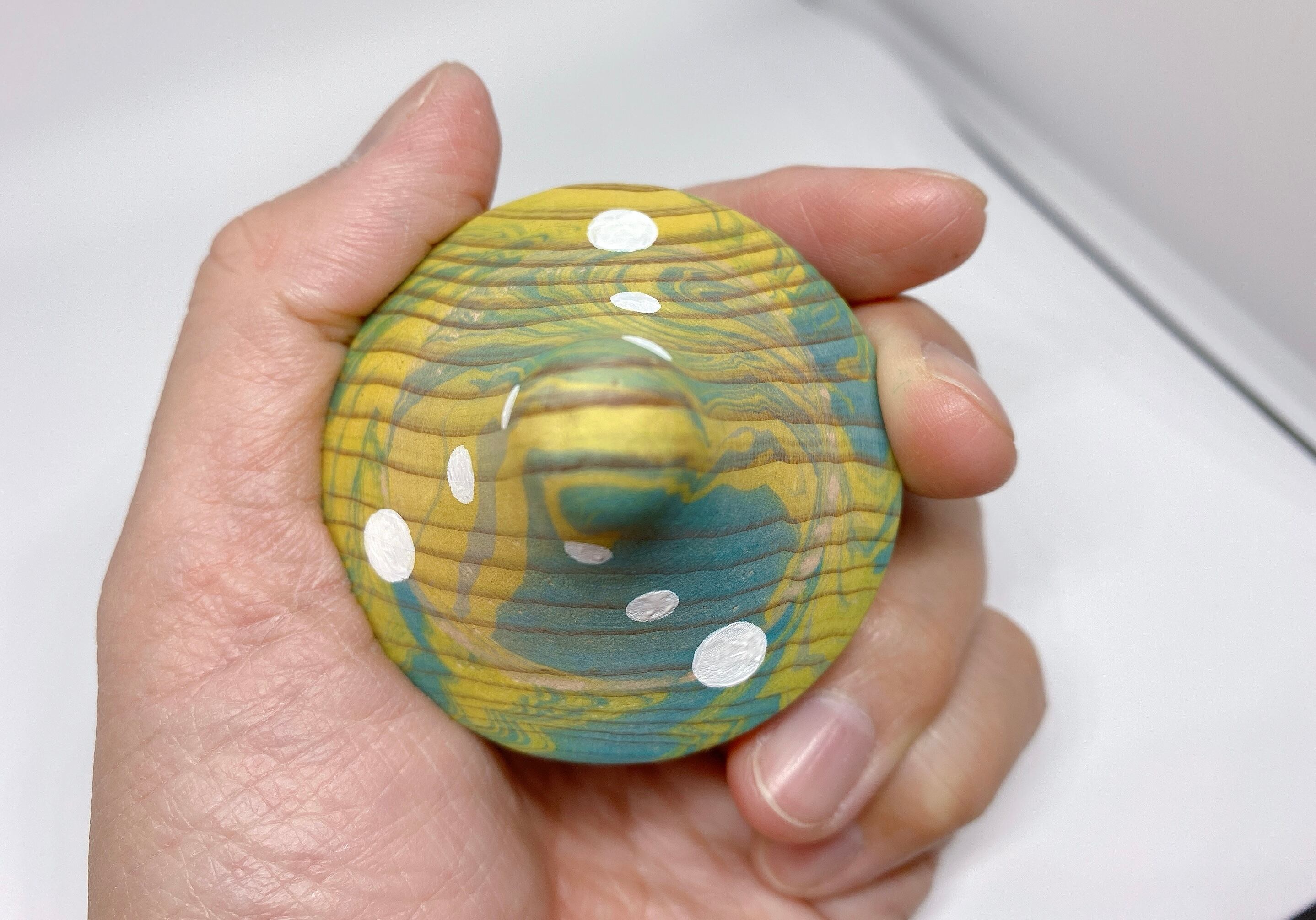 優しい色のマーブリングと、ドットを渦状に配置し制作しています。