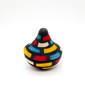 「私は前々回のあさくら杉おきあがりこぼし展から参加させて頂いていますが、このプロジェクトが続いているのは様々な形で関係を繋いでいる全ての方の協力があってこそだと思います。この作品では、人と人の間、過去の出来事とこれからの間を、柔らかくでも確かに繋ぐ存在として、流動的でとろりとしたおきあがりこぼしを制作しました。」